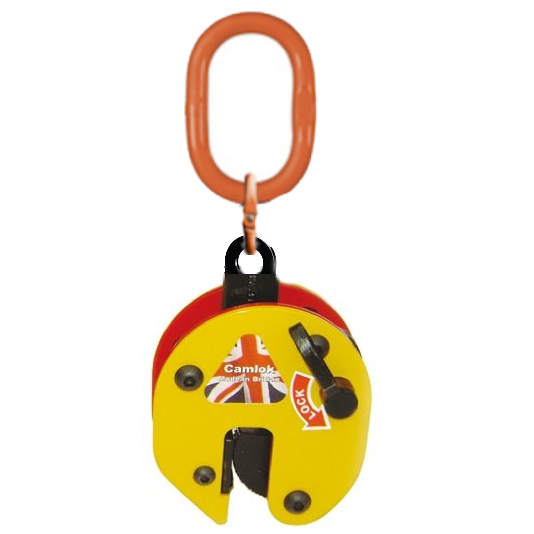 The Camlok 92 Series Plate Clamp with Link is a high-performance vertical lifting clamp designed for safe handling of steel plates, beams, fabricated components, and structural sections. This version is supplied complete with an integrated lifting link, allowing direct connection to hoists, lifting beams, and chain slings without requiring a hook ring.